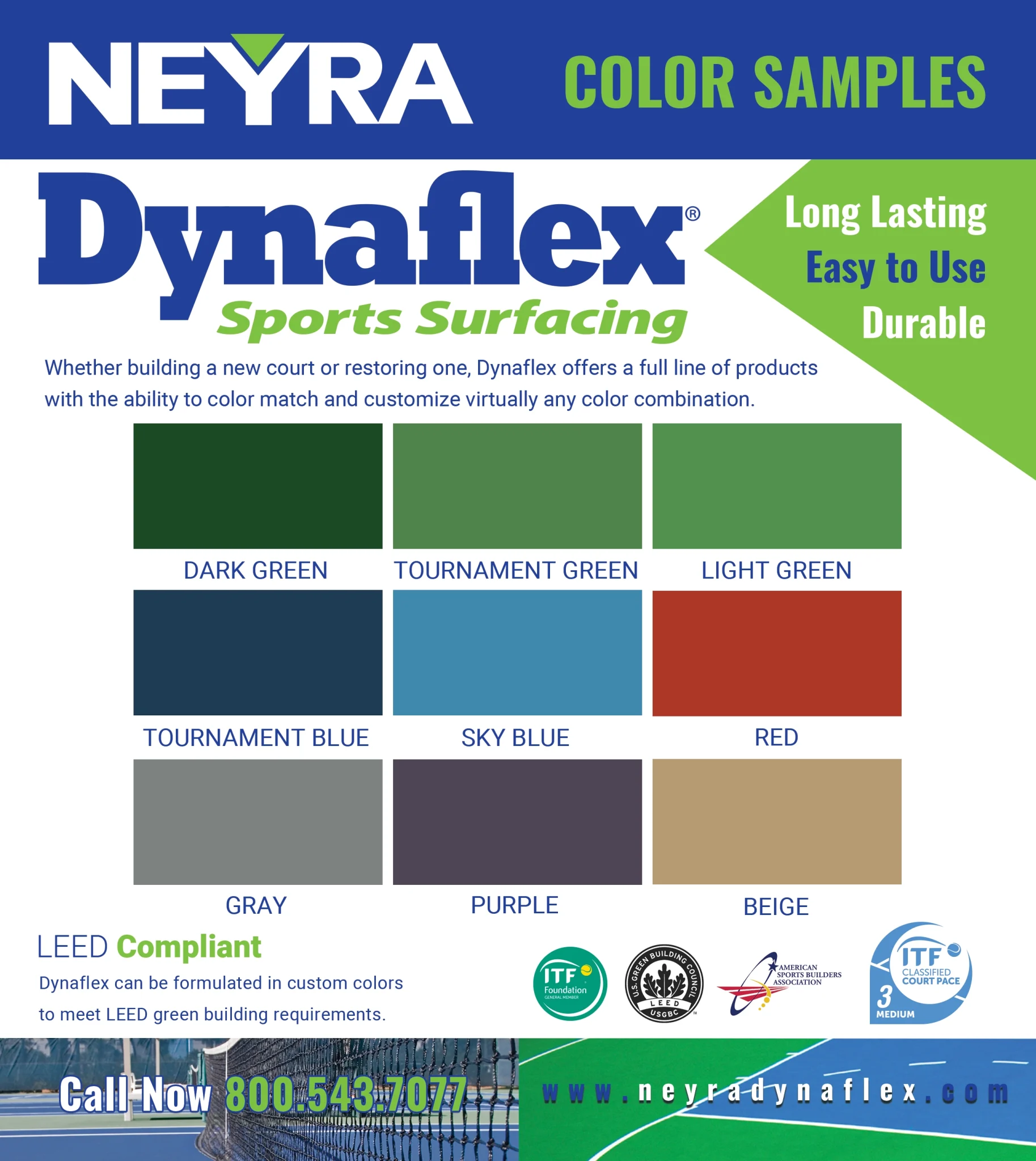 Dynaflex can be formulated in custom colors to met LEED green building requirements.